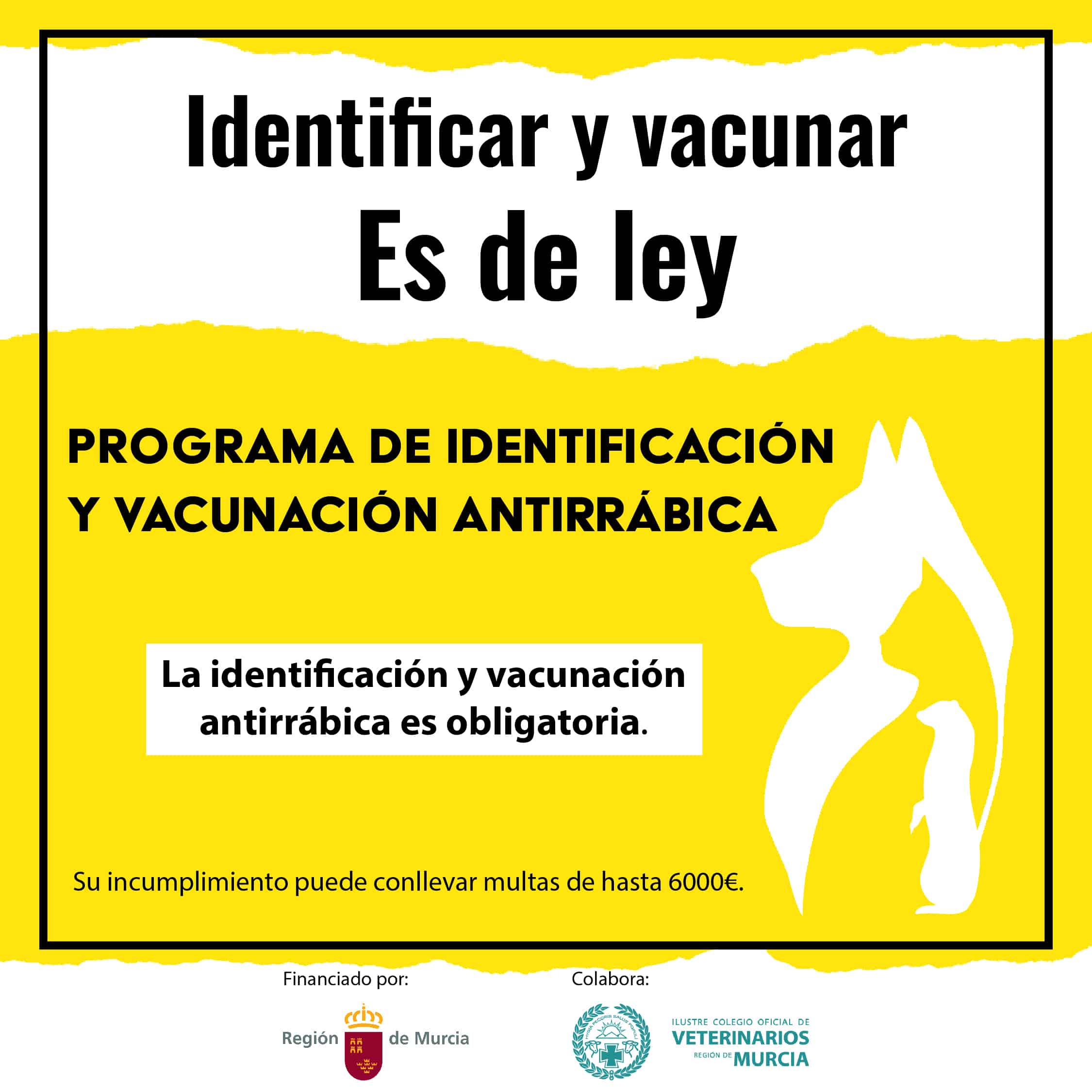 El Ilustre Colegio de Veterinarios de Murcia y la Consejería de Agua, Agricultura, Ganadería y Pesca de la Región de Murcia ponen en marcha la campaña: Identificar y vacunar a tu mascota es de Ley.