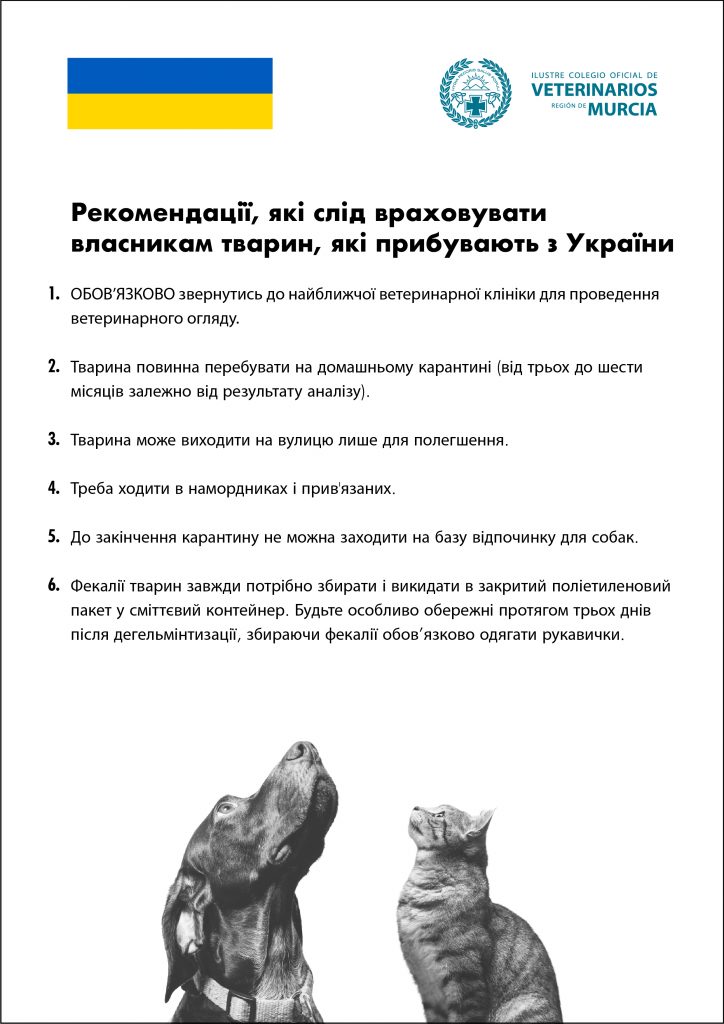 Recomendaciones a tener en cuenta por los dueños de animales llegados desde Ucrania