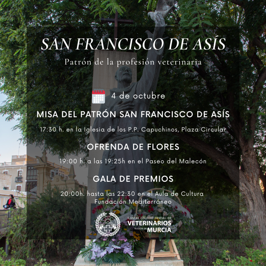 En el día mundial de los animales, el Colegio de Veterinarios de Murcia celebra su gran día en honor al patrón de la profesión veterinaria, San Francisco de Asís